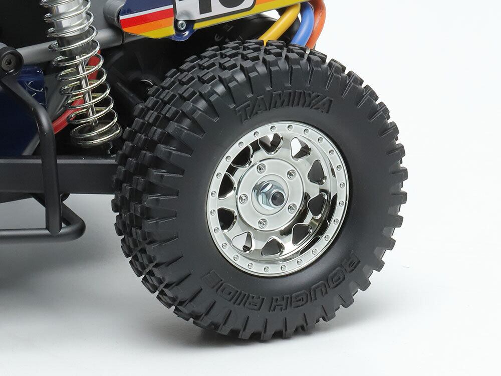 【 基本スペック 】 ●全長414mm、全幅233mm、全高136mm ●ホイールベース283mm ●トレッド=フロント196mm、リヤ202mm ●メインフレーム=樹脂製ロワデッキ+ロールケージ ●駆動方式=後輪駆動 ●デフギヤ=ボールデフ ●ステアリング=3分割タイロッド式 ●サスペンション=フロント・ダブルウィッシュボーン、リヤ・トレーリングアーム ●タイヤ幅/径=フロント30/92mm、リヤ38/96mm ●ダンパー=アルミシリンダー製エアレーションオイルダンパー ●ギヤ比=12.42:1 (キット標準18Tピニオン使用時) ●シャフト長10.5mm以上の540タイプモーター(別売) ●フルベアリング仕様 ●スピードコントローラー=ESC仕様(別売)